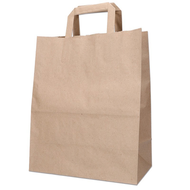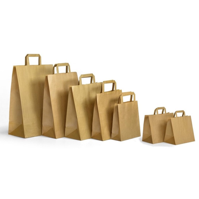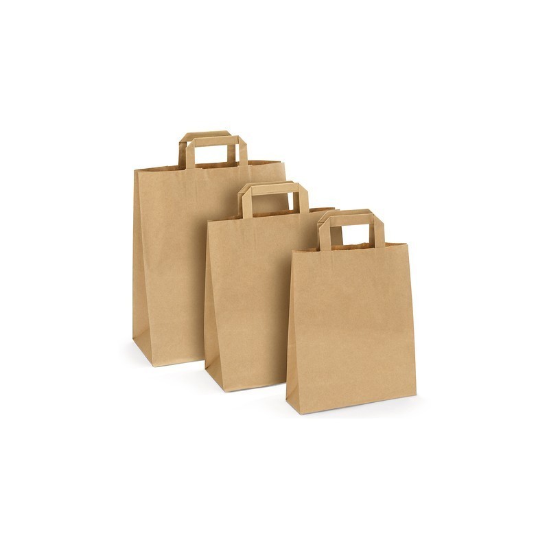 Bolsas de papel kraft liso con asa plana. Reciclable y biodegradable.